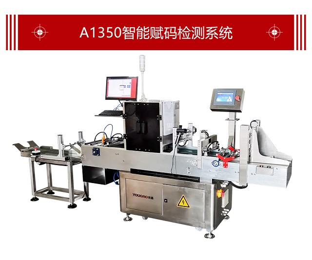 A1350A智能賦碼檢測(cè)系統(tǒng),A1350A是友高定位于物聯(lián)網(wǎng)標(biāo)識(shí)中“識(shí)”的部分。該款產(chǎn)品主要功能是進(jìn)行生產(chǎn)日期檢測(cè),將生產(chǎn)日期“錯(cuò)、漏、殘、缺”問(wèn)題一網(wǎng)打盡,統(tǒng)統(tǒng)檢測(cè)出來(lái),精準(zhǔn)剔除不良品;袋裝、盒裝產(chǎn)品重張檢測(cè)技術(shù)使重張、連張漏碼不再有。