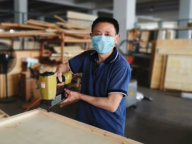 藺師傅為出去的每一臺(tái)機(jī)器裝箱打包,并在箱體上標(biāo)明箱內(nèi)產(chǎn)品型號(hào)。采用這種整箱運(yùn)輸?shù)姆绞剑瑱C(jī)器、配件都能安全的運(yùn)輸?shù)娇蛻艄S。