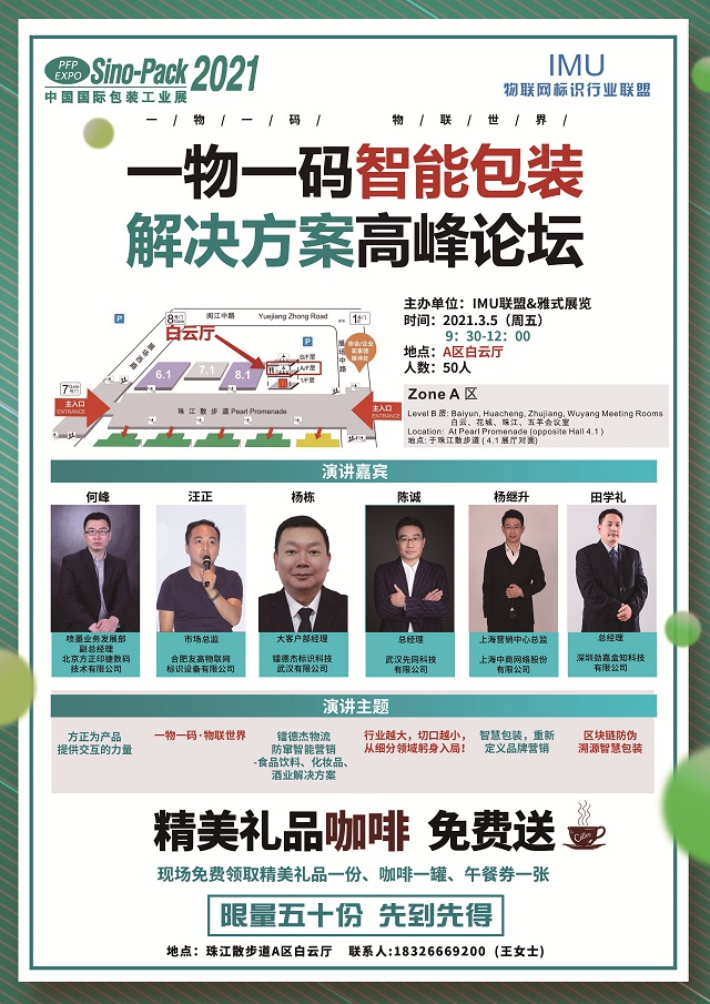 展會同期,IMU聯(lián)盟論壇活動也將開啟,合肥友高物聯(lián)網(wǎng)標(biāo)識設(shè)備有限公司作為IMU物聯(lián)網(wǎng)標(biāo)識行業(yè)聯(lián)盟理事長單位、秘書長單位,攜手雅式展覽公司共同舉辦“一物一碼智能包裝解決方案高峰論壇”,同時,友高也將參與本次論壇主題演講。屆時物聯(lián)網(wǎng)標(biāo)識行業(yè)大咖將群聚廣州,開啟一場“一物一碼智能包裝解決方案”的頭腦風(fēng)暴,勢必引爆花城!