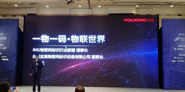 友高公司不僅是IMU物聯(lián)網(wǎng)標識行業(yè)聯(lián)盟的理事長單位和秘書長單位,還是領先的物聯(lián)標識一物一碼解決方案服務商,友高總經(jīng)理陳文正先生此次作為特邀嘉賓出席參加會議,并現(xiàn)場作了題為《一物一碼·物聯(lián)世界》的主題演講。