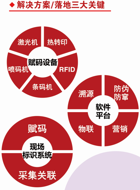 一物一碼項目落地需要軟硬件設施的協(xié)調(diào)配合,賦碼設備+現(xiàn)場標識系統(tǒng)+軟件平臺是支撐一物一碼的三大重要落地關鍵,設備和軟件相輔相成缺一不可。