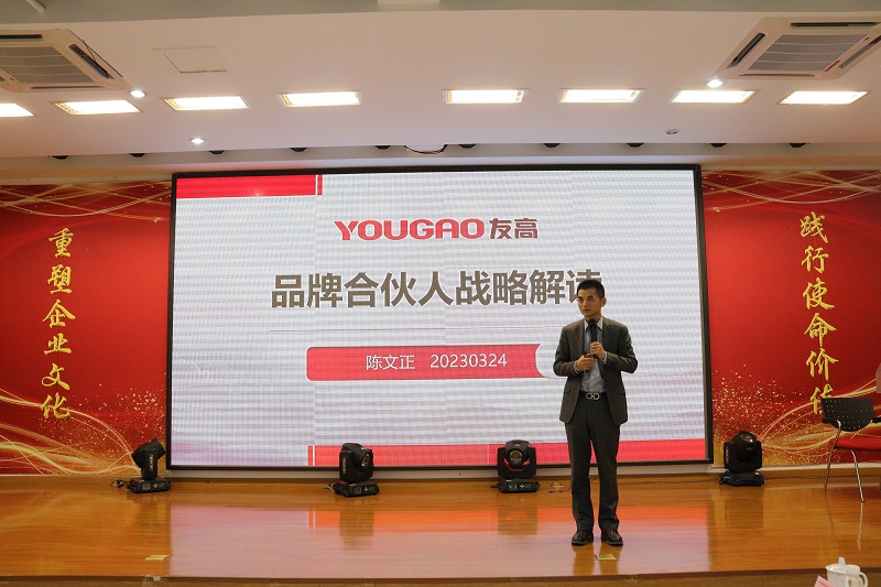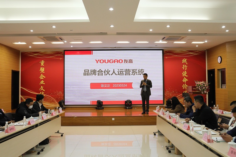 隨后,友高董事長陳文正先生進(jìn)行了《品牌合伙人運(yùn)營系統(tǒng)》的主題演講,他從市場、營銷、產(chǎn)品、售前、售后、價(jià)格保護(hù)、人才培訓(xùn)等多方面詳細(xì)演示了友高完整的品牌合伙人運(yùn)營系統(tǒng)。