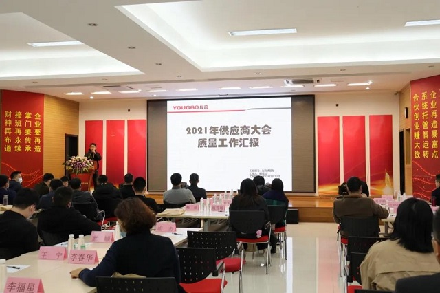 他提到,質(zhì)量是一切的基礎(chǔ),沒有質(zhì)量更談不上企業(yè)的品牌、發(fā)展、競爭。友高一直高度重視產(chǎn)品質(zhì)量問題,并對此設(shè)定了質(zhì)量目標,管控要求等;結(jié)合以往的供應(yīng)體會,他現(xiàn)場還分享了一些個人的質(zhì)量管理經(jīng)驗,倡導大家在“誠信”的基礎(chǔ)上,把好任何一件產(chǎn)品,一個零部件的質(zhì)量關(guān),實現(xiàn)合作共生,以此更好成就客戶。